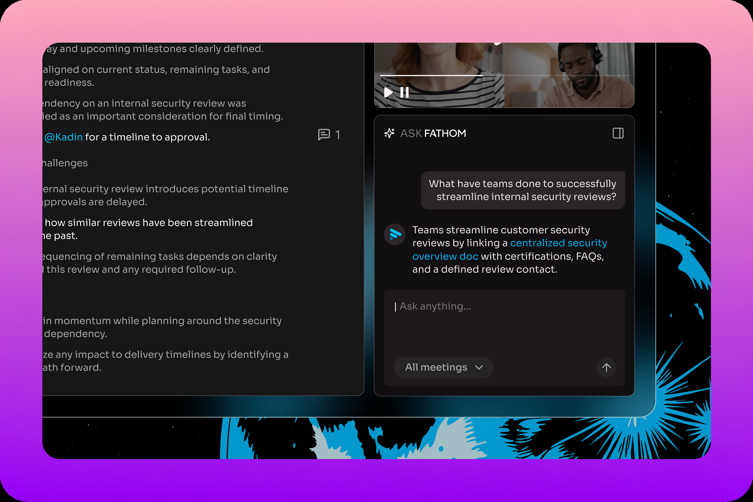 Fathom exists to change that. Our mission is simple: capture what matters in every meeting so individuals and teams can stay present and move work forward with clarity and confidence.