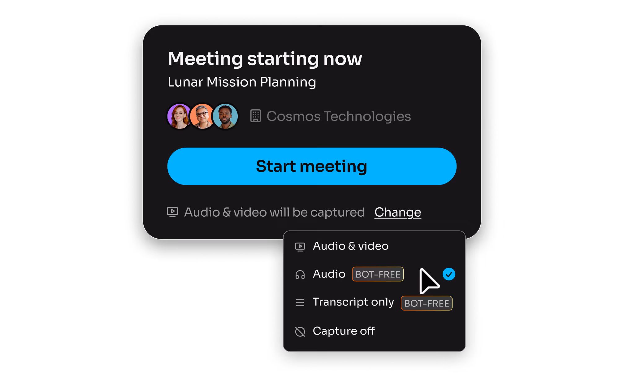 Granola focuses on transcripts. Fathom offers flexible capture modes when needed, and always knows who said what – so summaries and action items are always attributed to the right person.