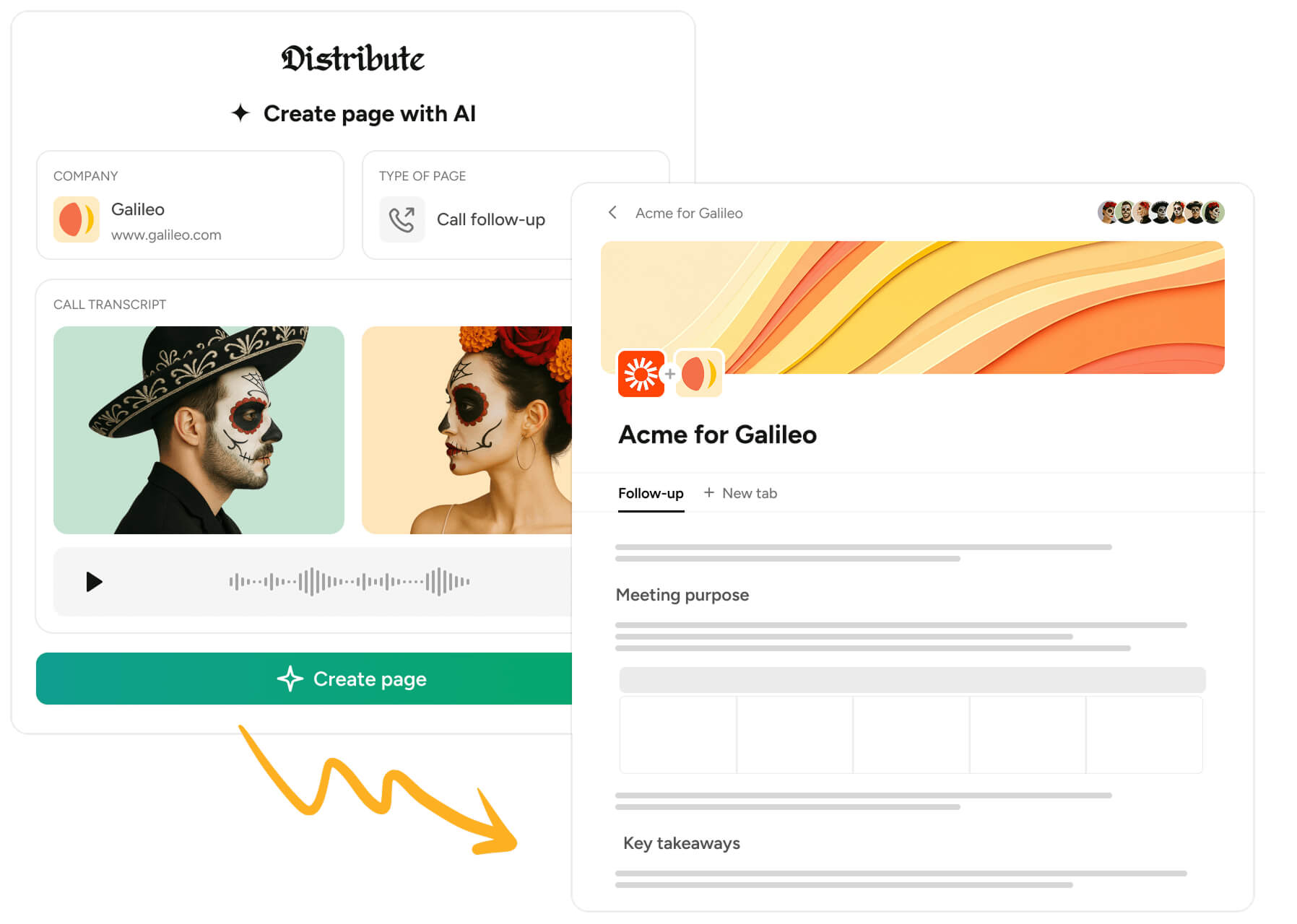 Turn 3-hour follow-ups into 60-second victories with AI-powered digital sales rooms. Distribute's native integration automatically pulls your Fathom recordings and generates personalized buyer portals with everything discussed – pain points, pricing, next steps – all on one trackable link that replaces 55-slide decks and 27 attachments. It's the difference between buyers ghosting your emails and executives actually engaging, sharing with their team, and moving deals forward 40% faster.